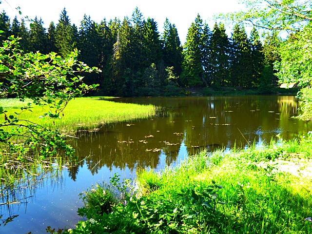Der Stierbergsteich (550 m ü. NN) liegt zwischen Sophienhof, Rothesütte und Benneckenstein und empfängt uns bei herrlichem Sonnenschein mit den allerschönsten Wasserspiegelungen.