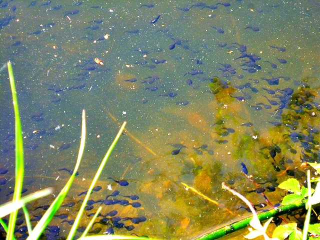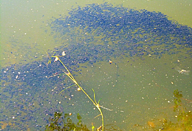 Bei näherem Hinsehen hat der Teich allerdings an diesem Tag mehr zu bieten als nur idyllische Ein- und Ausblicke: Eine Kaulquappeninvasion.