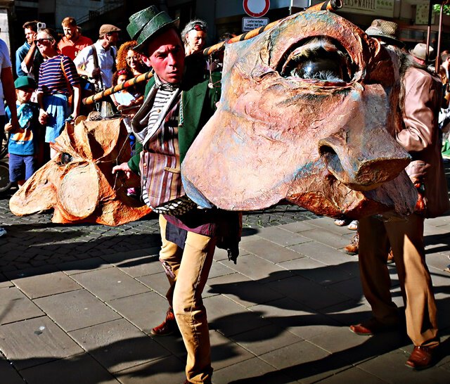 Auch diese Augen klappern und schauen das Publikum an.