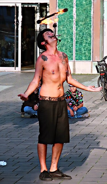 Molloy schluckt nicht nur Schwerter, er zündet sie auch noch an.