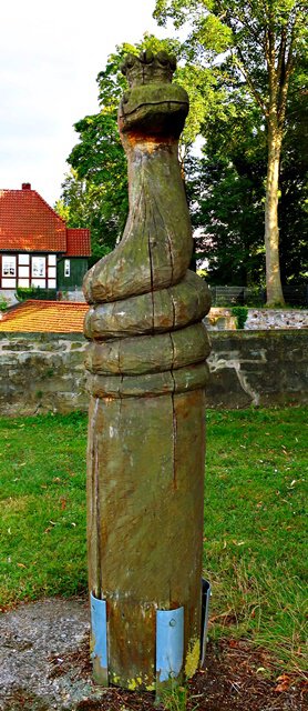 Die Schlangenkönigin von Ingo Schröder steht im Garten der Burg und symbolisiert Wiedergeburt, ewige Jugend und Unsterblichkeit.