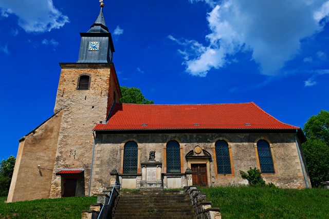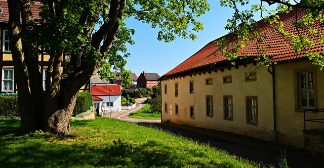 Vorbei am Rastplatz Hufeisen mit einem tollen Blick auf Harbke geht es runter in den Ort.