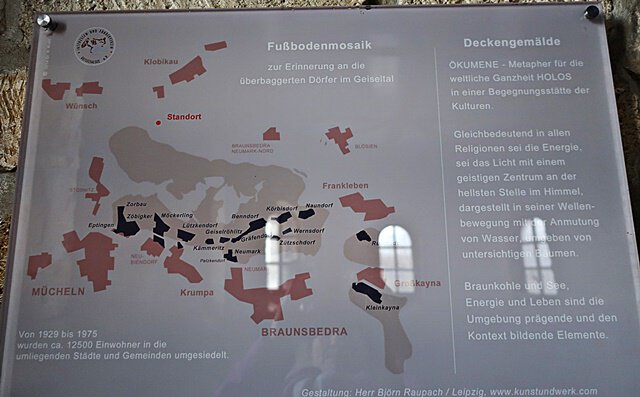Dieser Schilderwald steht oberhalb des Geiseltalsees. Die Entfernungsangaben sind reine Luftlinien, da es keine direkten Verbindungen über den See gibt.