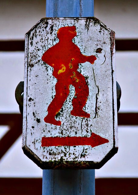 An dieser Stelle haben wir uns gefragt, ob es sich um ein Wanderzeichen handelt, zumindest hat es uns erst einmal den Einstieg zum Wanderweg gezeigt.