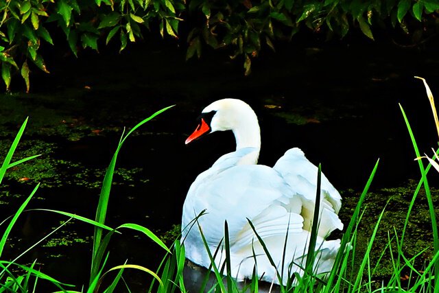 Hier hat mir gefallen, wie schön der Schwan sein Gefieder aufstellt.