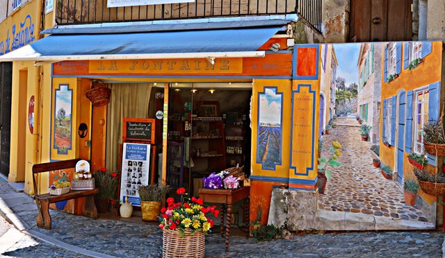 Ein Geschäft am Marktplatz von Valensole.