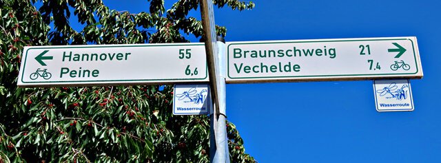 Die Wasserroute startet am Wasserturm Friedrich-Ebert-Platz in Peine. Auf dem Weg zum Yachthafen Marina Bortfeld werde ich entlang des Mittellandkanals von Berufs- und Freizeitschifffahrt begleitet.