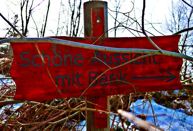 In der Nähe der Tränkebachhütte befindet sich dieser schöne Aussichtspunkt mit Bank, der direkt von der Forststraße abbiegt.
