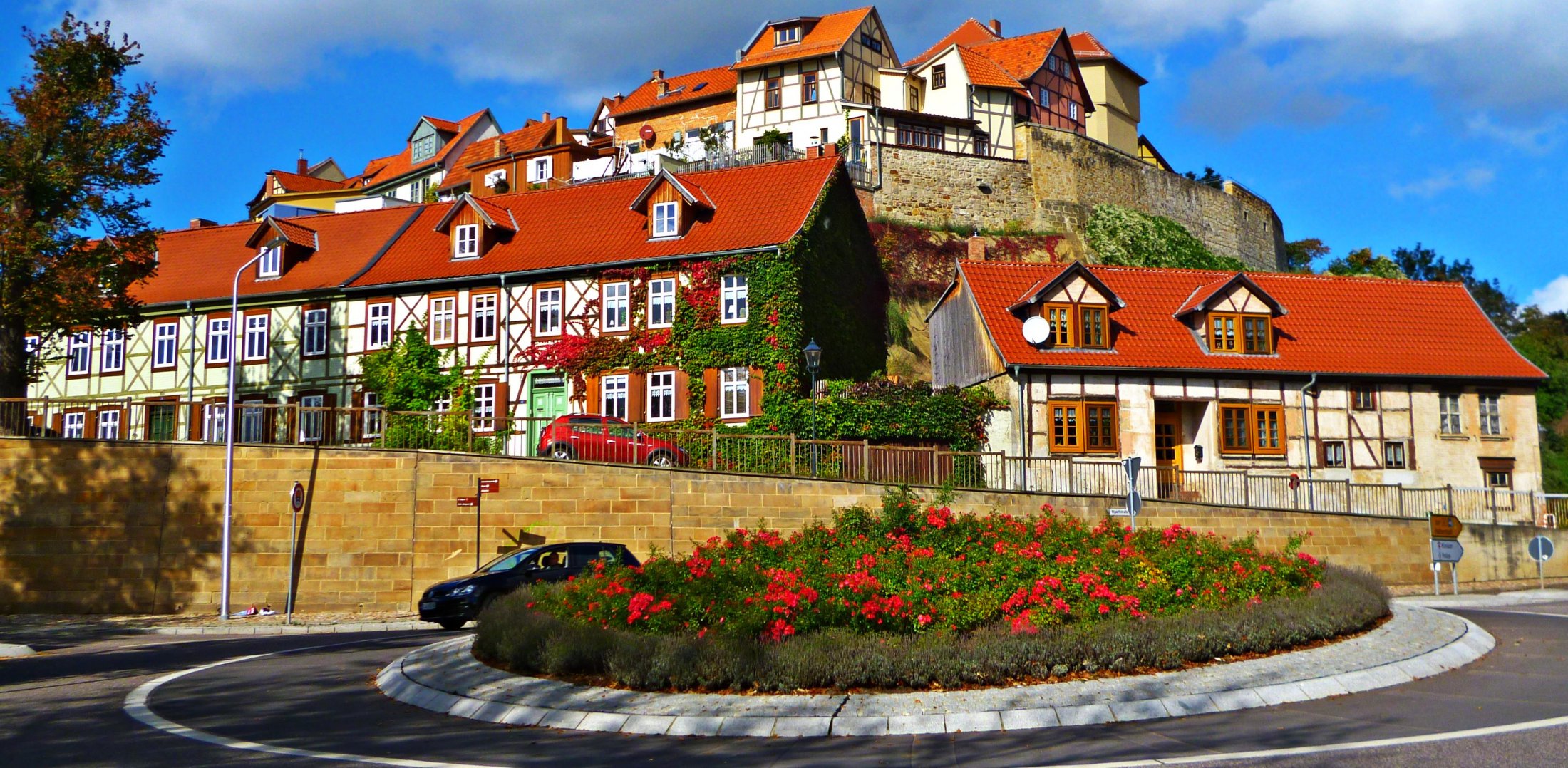 Ankunft in Quedlingburg. Kreisel kurz vor der Altstadt.