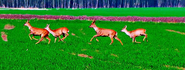 Die Tiere sind doch ziemlich scheu. Erst haben sie mich misstrauisch beäugt, dann sind sie schnell davongelaufen.