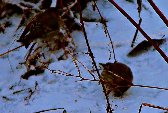 Die Vögel haben definitiv eine gute Zeit und amüsieren sich im Schnee.