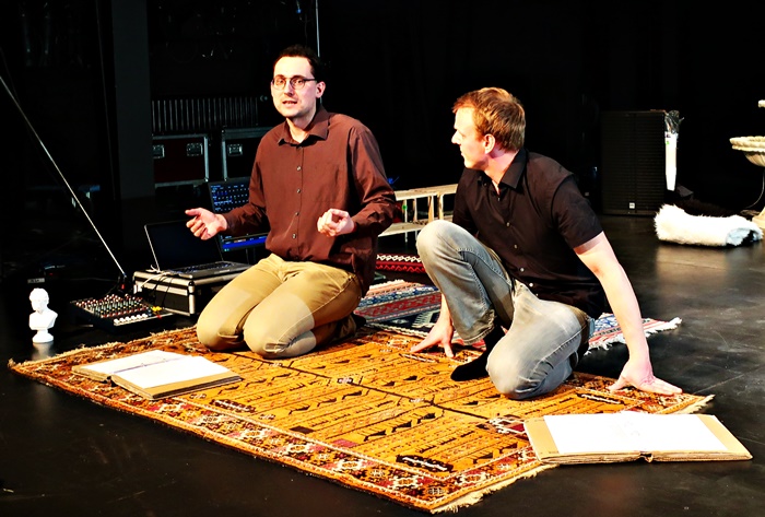 Markus&Markus erklären auf Ihren Teppichen, wie ihr Stück aufgebaut ist und gemeint ist.