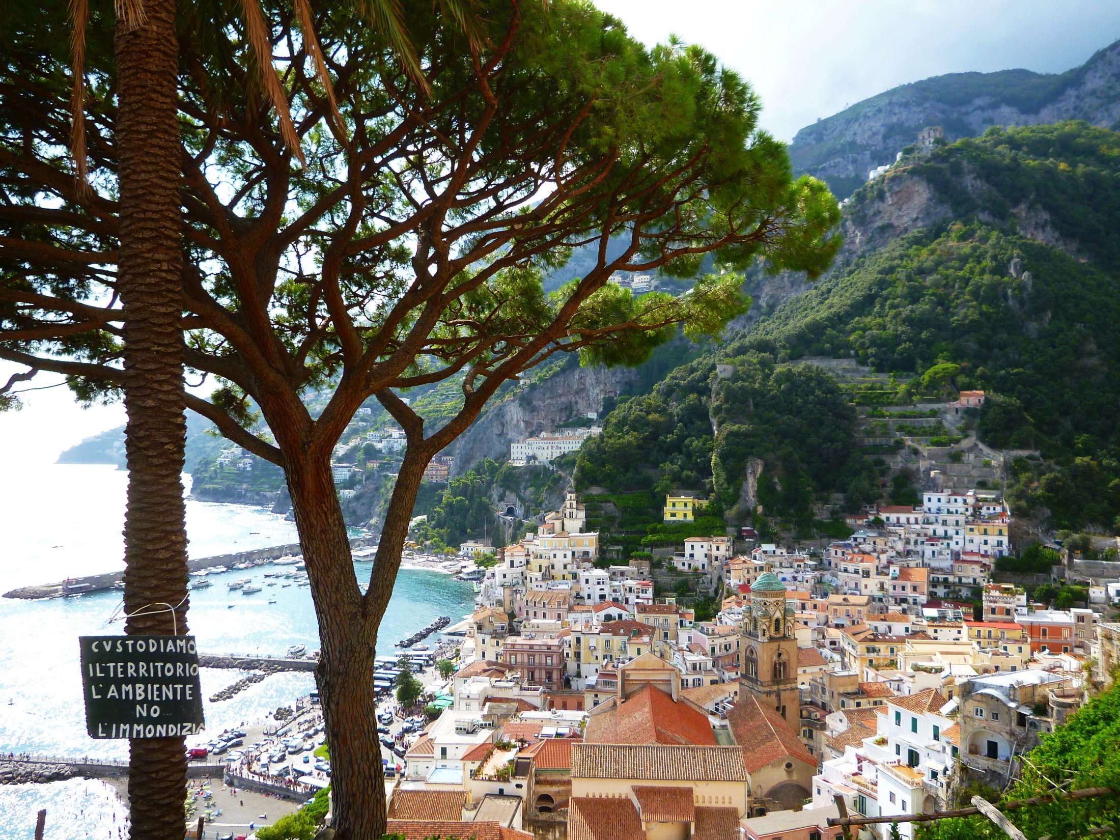 Anmarsch auf Amalfi. Ein Blick auf das Schild am Baum verrät, dass sich leider nicht alle Touristen anständig verhalten.