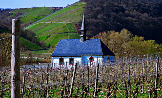 Diese Bilder liebe ich: ein nettes Kirchlein mitten im Weinberg.