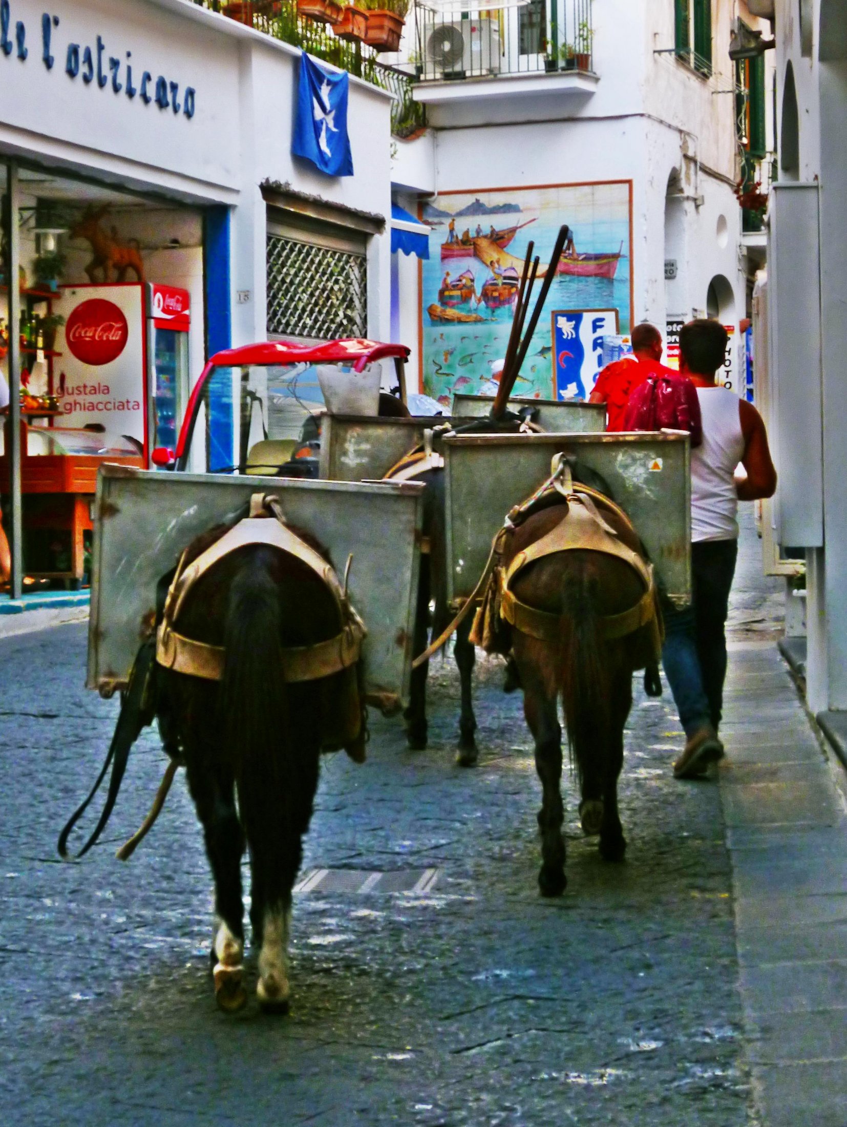 Auch das gibt es noch in Amalfi: Warentransporte mit Hilfe von Tieren. An eine Fahrt mit dem Auto ist angesichts der schmalen Gassen auch gar nicht zu denken.