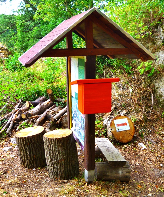 Ein Moment des Schreckens macht sich breit, als wir auf diesen roten Kasten, vermutlich einen ehemaligen Sonderstempel, stoßen und dieser leer ist. Unangenehme Erinnerungen an kaputte Stempel der letzten Wanderungen werden wach.