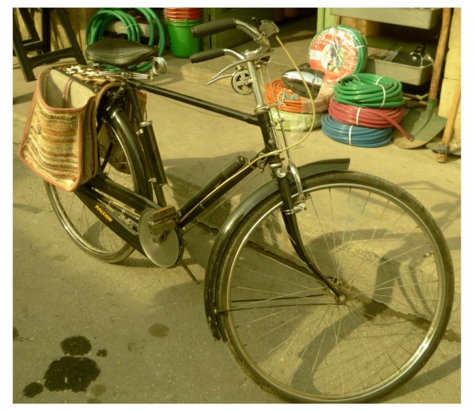 Auffällig an diesem Fahrrad sind die originellen Satteltaschen.