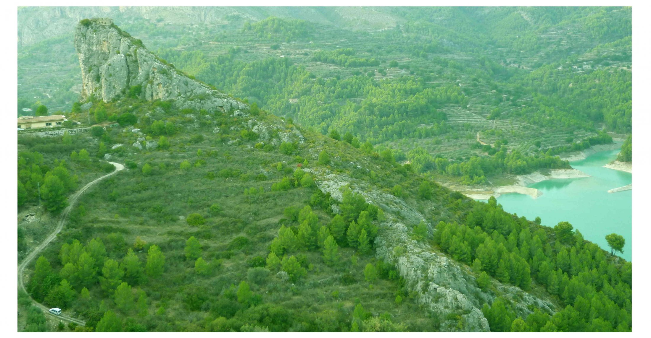 Der Leguan zieht sich samt Schwanz über den Bergrücken.