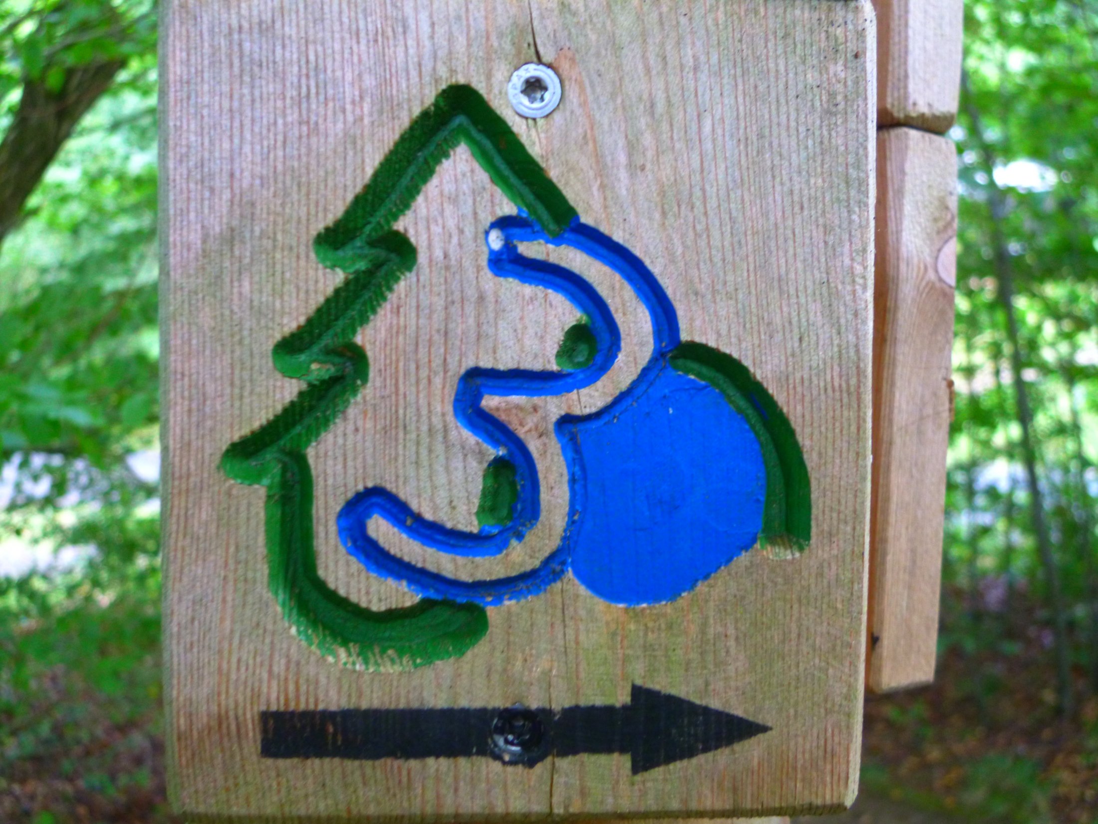 Das Symbol der Drei-Täler-Tour und Wegmarkierung.