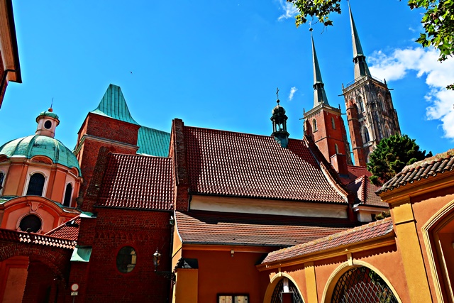 Die Dominsel in Breslau, ein Gewirr von Kirchen und Kirchengebäuden.