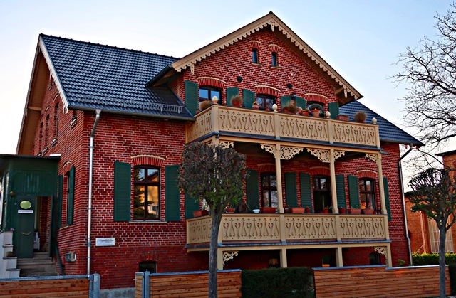 Diese wunderschön restaurierte Villa mit Holzbalkon liegt in der ehemaligen Luisenstraße in Ballenstedt.
