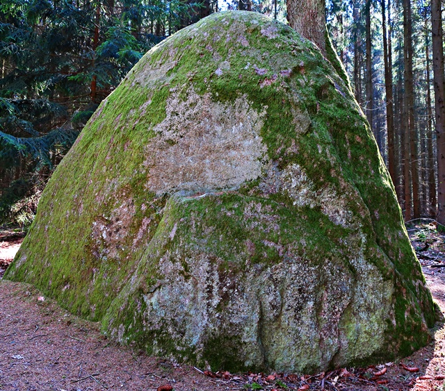 Nach einem steilen Anstieg von Thale hinaus erreichen wir die Stempelstelle 73, den Glockenstein.