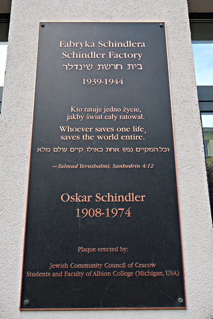 Oskar Schindler Gedenkstein an seiner Fabrik.