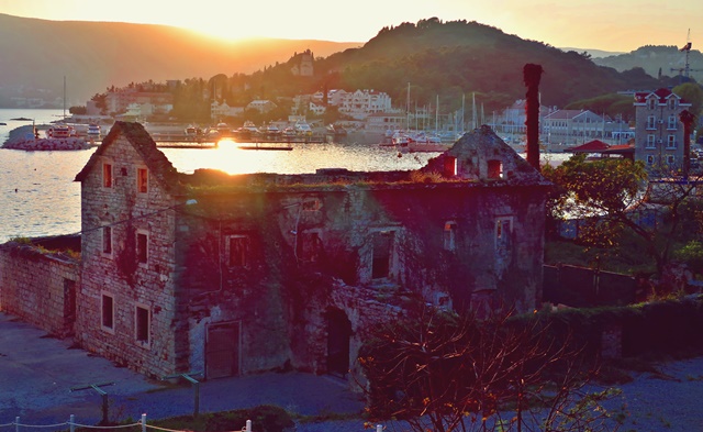 Sonnenuntergang im Hafen von Meljine.