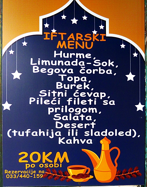 Als wir in Sarajevo sind ist gerade Ramadan, die Fastenzeit der Muslime. Das Iftar – das Fastenbrechen – wird mit besonderen Menüs begangen.