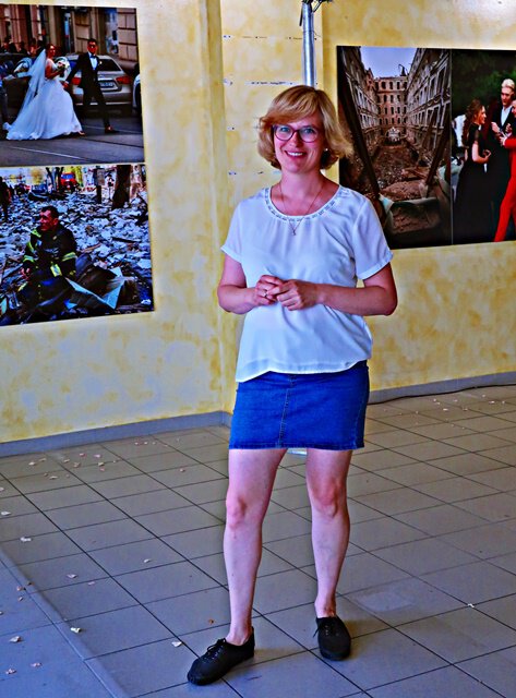 Ogloblin’s Tochter erklärt uns, dass sich in den gegenüberliegenden Bilder immer die Farben widerspiegeln. Hier sind es die Farben der Luftballongs mit dem Farbspiel des zerstörten Autos.