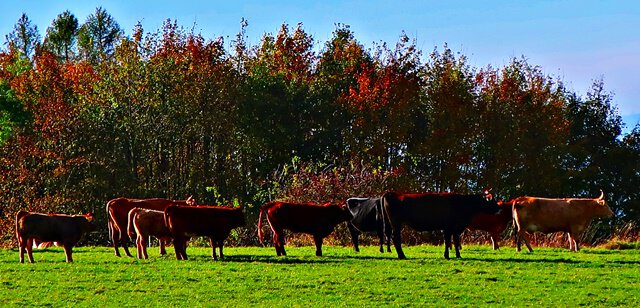 Dieser Rinder stehen auf einer Wiese nahe dem WeltWald in Bad Grund. Sieht aus wie im Allgäu.