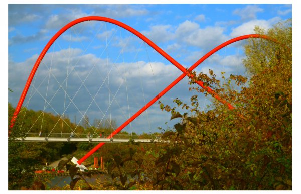Sieben Brücken und Stege ragen plastisch aus der Fläche heraus und setzen Akzente. Außer ihrer Funktion als Brücken sind sie gleichzeitig Landmarken, Orientierungs- und Anziehungspunkte.