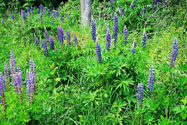 Ein Lupinienmeer begegnet uns am Wegesrand von der Stempelstelle HWN 53 zur HWN 56.