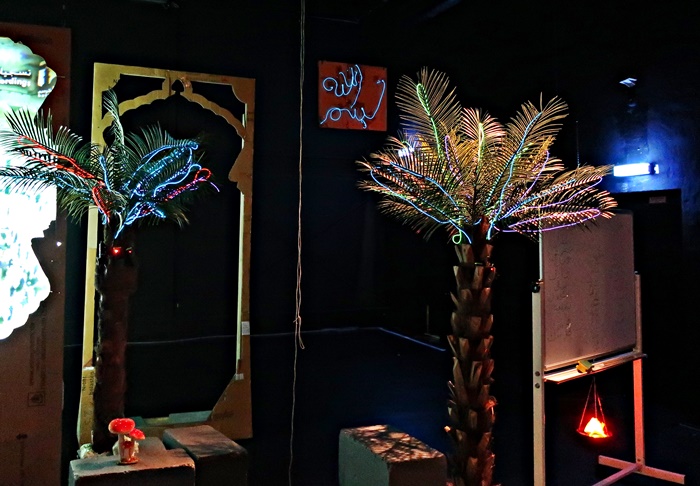 Palmenschmuck im Weihnachtsstyle: Hauptsache es leuchtet und blinkt.