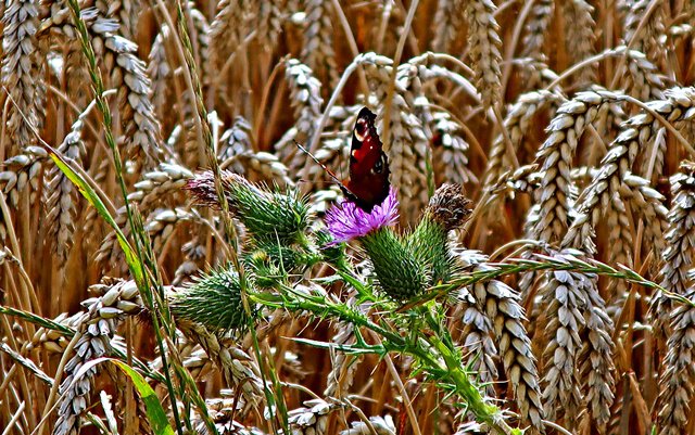 Weizen, Diestel und Tagpaufenauge