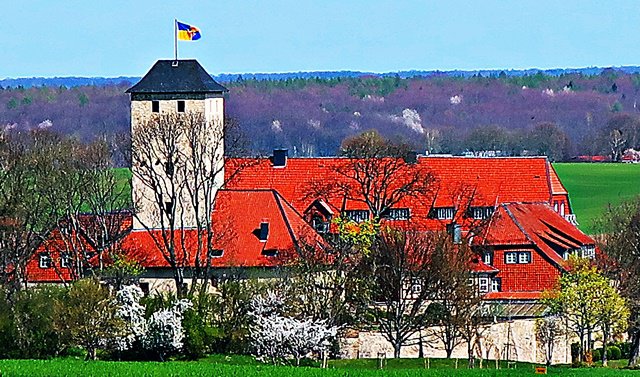Die Burg Warberg ist bei der Anfahrt zum Ausgangspunkt der Wanderung bereits von Weitem zu sehen.