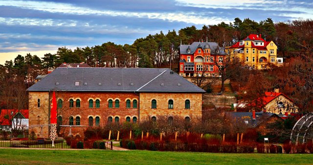 Der Blick von den Barocken Gärten auf die wunderschöne Villen-Kulisse von Blankenburg.