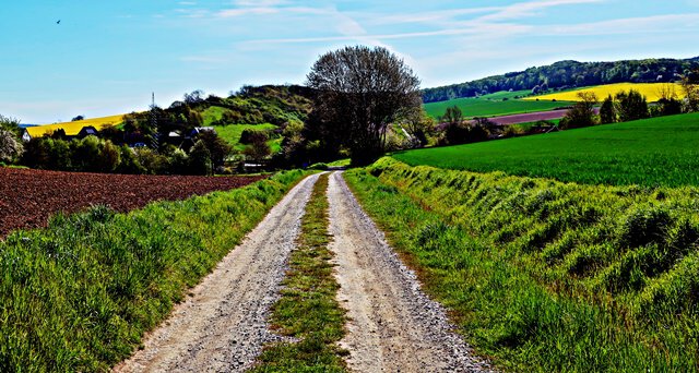 Kurz nach Klein Düngen und der Querung der B243 biegen wir rechts in einen Feldweg ein. Rückblickend fotografiere ich die schöne Landschaft.