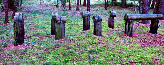 Wofür diese Holzböcke aufgestellt wurden konnten wir uns nicht ganz erklären. Für Pferde?