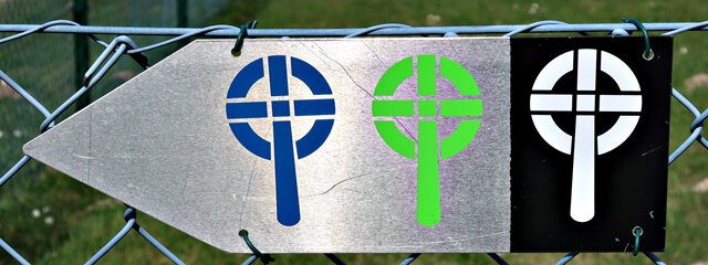 Etwas erstaunt sind wir über diese Wegweiser. Was das wohl sein mag, drei Tennisschläger?