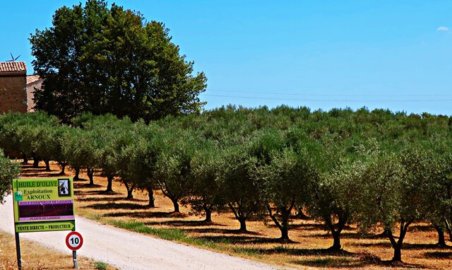 Olivenbäume auf dem Plateau. Hier werden auch Lavendelprodukte verkauft.