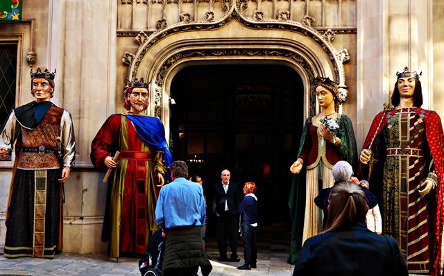 Zum Fest gehört auch das Aufstellen dieser übermenschlich großen Figuren vor dem Rathaus.