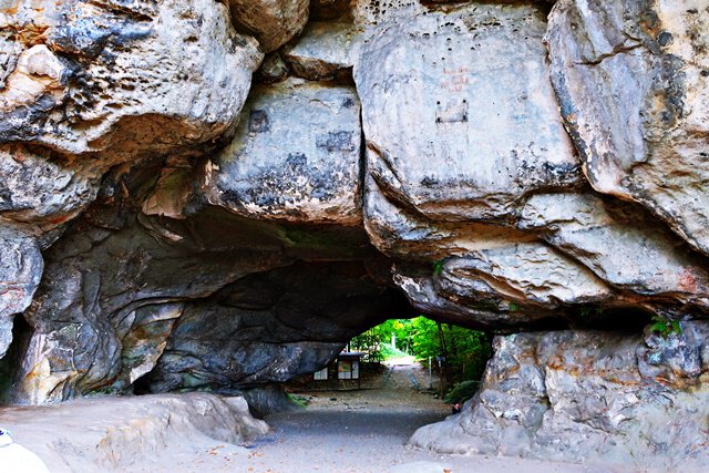 Am Felsentor Kuhstall machen wir unseren ersten Halt. Dort klettern wir auch die Himmelsleiter empor.
