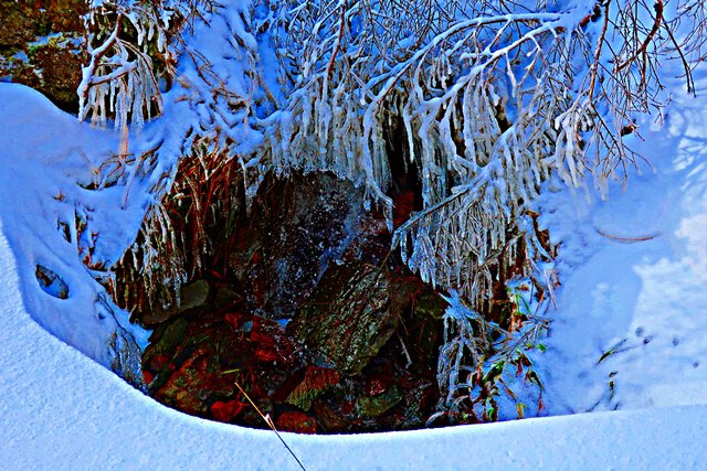 Die Sieber fühlt zur Zeit richtig viel Wasser. Toll sind die Eisgebilde, die sich an dieser Stelle bilden.