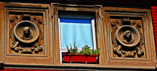 Das Haus ist besonders schön verziert und fällt deshalb sofort ins Auge.